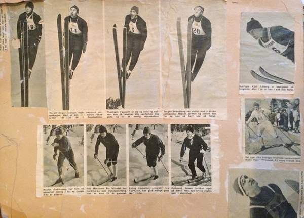 Ein del av bildesamlinga har eg framleis. Eit spesielt klenodium er ei papplate fylt med sportsbilde. Sjøl om eg ikkje var meir enn 7-8 år, hugsar eg godt at vi bruka mjøl-lim.