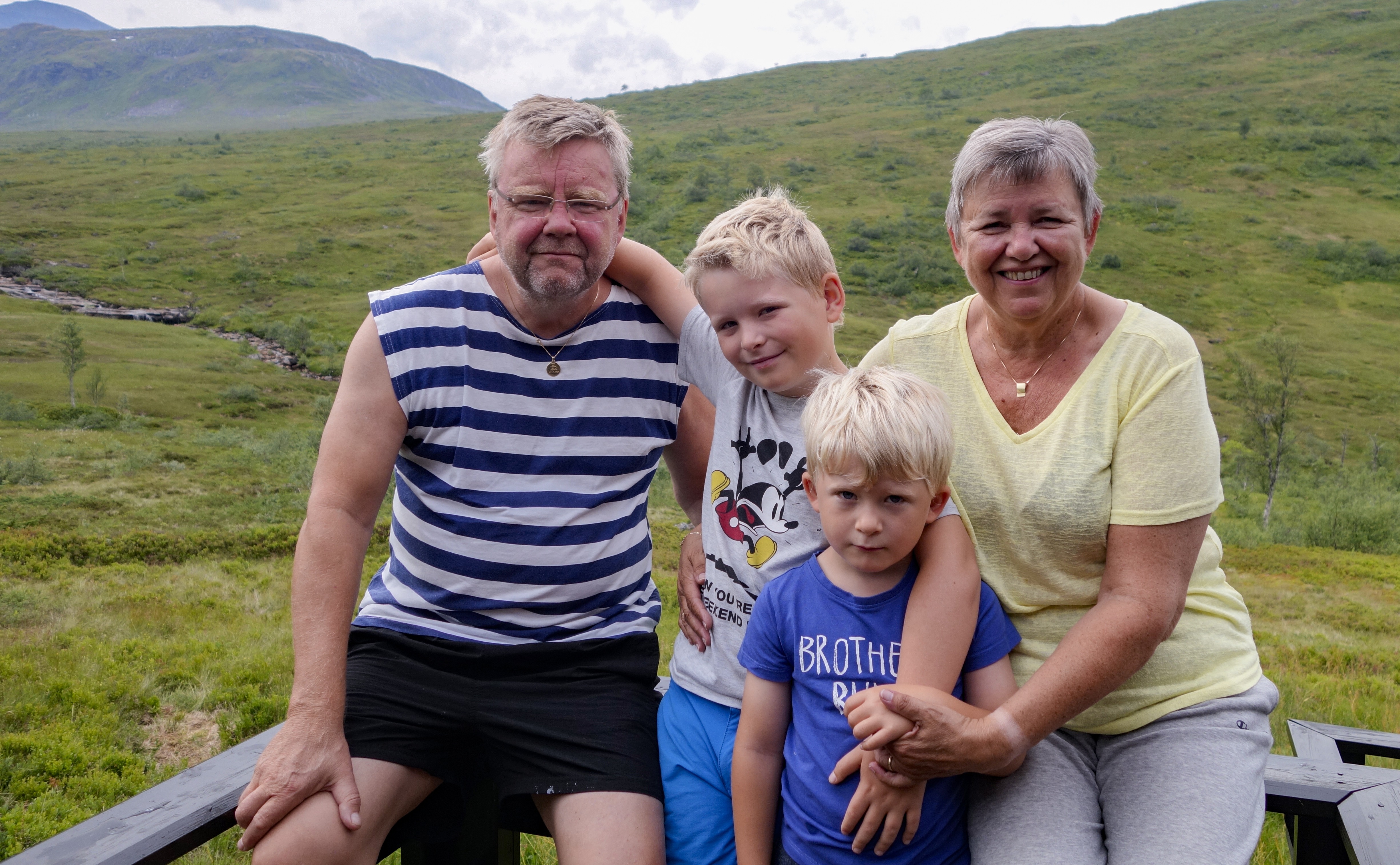 To verkelege gullgutar blant dei som betyr aller mest, er barnebarna Daniel og Benjamin. I sommar var dei med til hytta på Tæla. Det var stort å sjå korleis småkarane trivdes oppe på stølen. I det fine veret vart det mykje bading i Fossåa. Daniel tok i tillegg turen til Fossafjellet saman med meg og pappa Tom. Dette vart dei beste dagane i heile sommar.