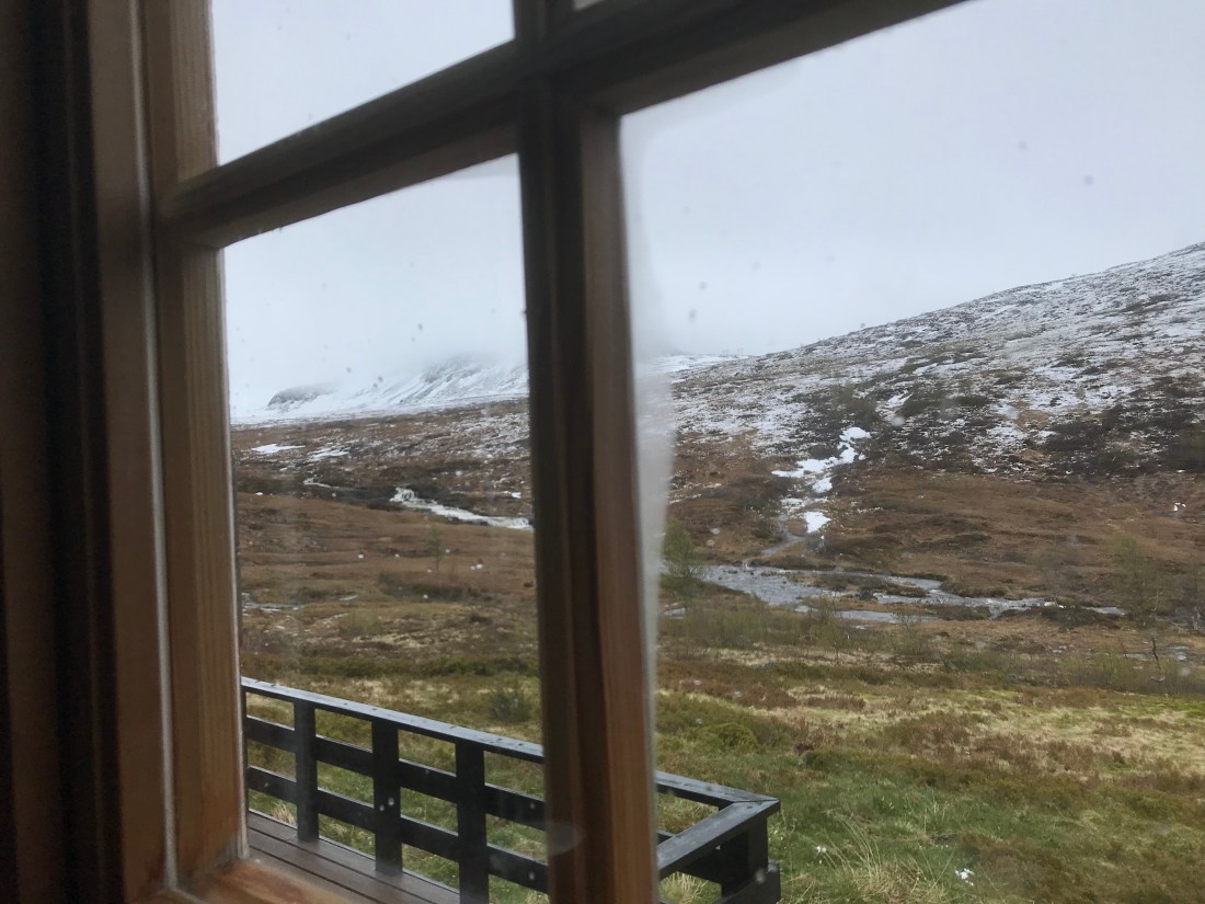Veret har eg ingen forventningar til denne helga. Sjølv om det er siste dagen i mai, ligg landskapet kvitt utanfor hytteglaset. Vinden uler rundt novene, snøbygene fer forbi og termometeret viser berre nokre få plussgrader.