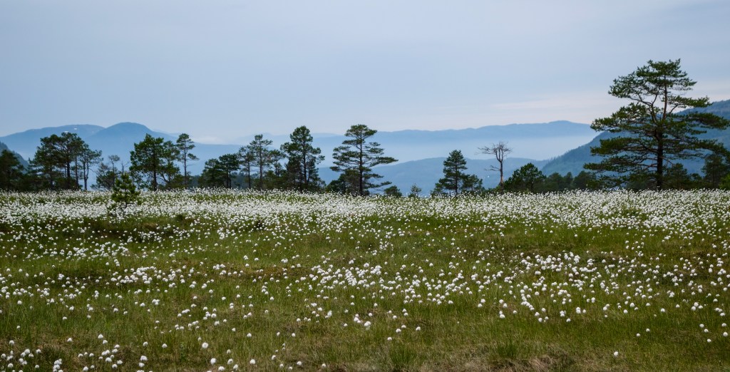 Mange stader var 2016 eit myrullår utanom det vanlege. Det er mykje kvitt å sjå i år også, i alle fall her ute ved Hustadvika. På rabbar og myrer lyser det skinande kvitt.
