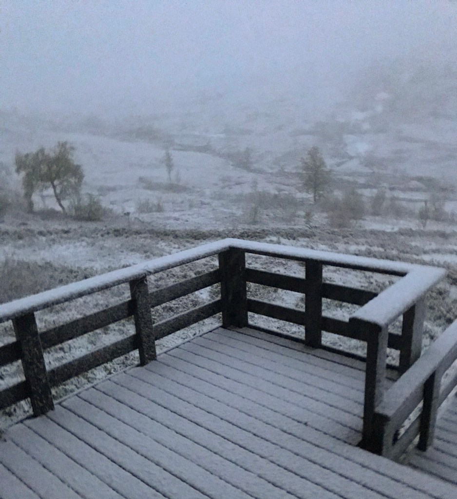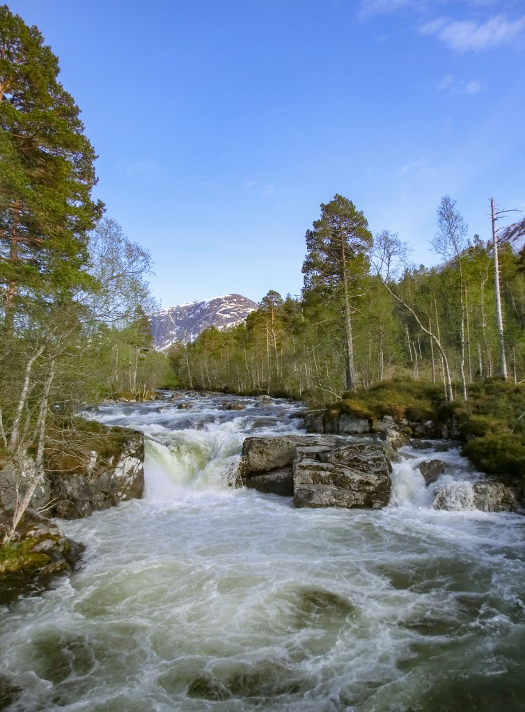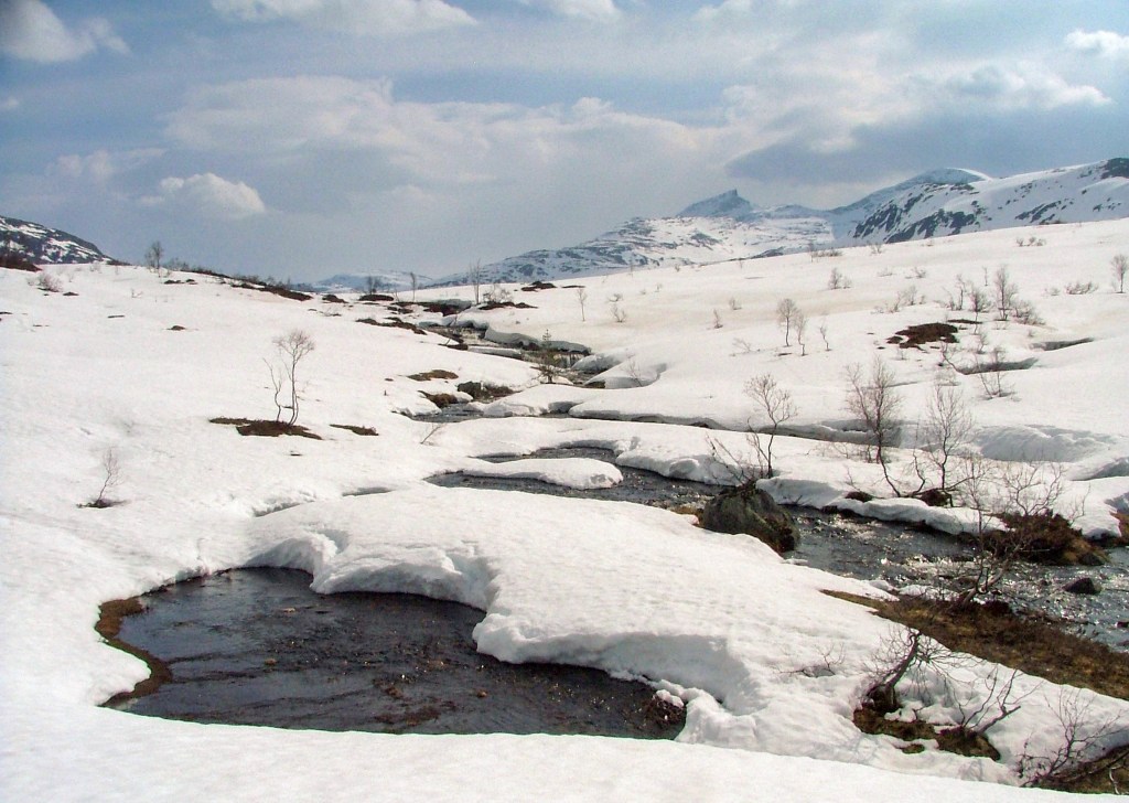 Frå hytta kan vi følge med på Fossåa. Som regel ligg ho skjult, men ikkje heilt lydlaus, under snø og is når skisesongen startar. Så vaknar ho etter kvart til liv, og kjem fram i dagen. Eit år kan prosessen ta tid, andre år skjer det heile brått som ein eksplosjon. Det kjem an på snømengde, vind og ver.