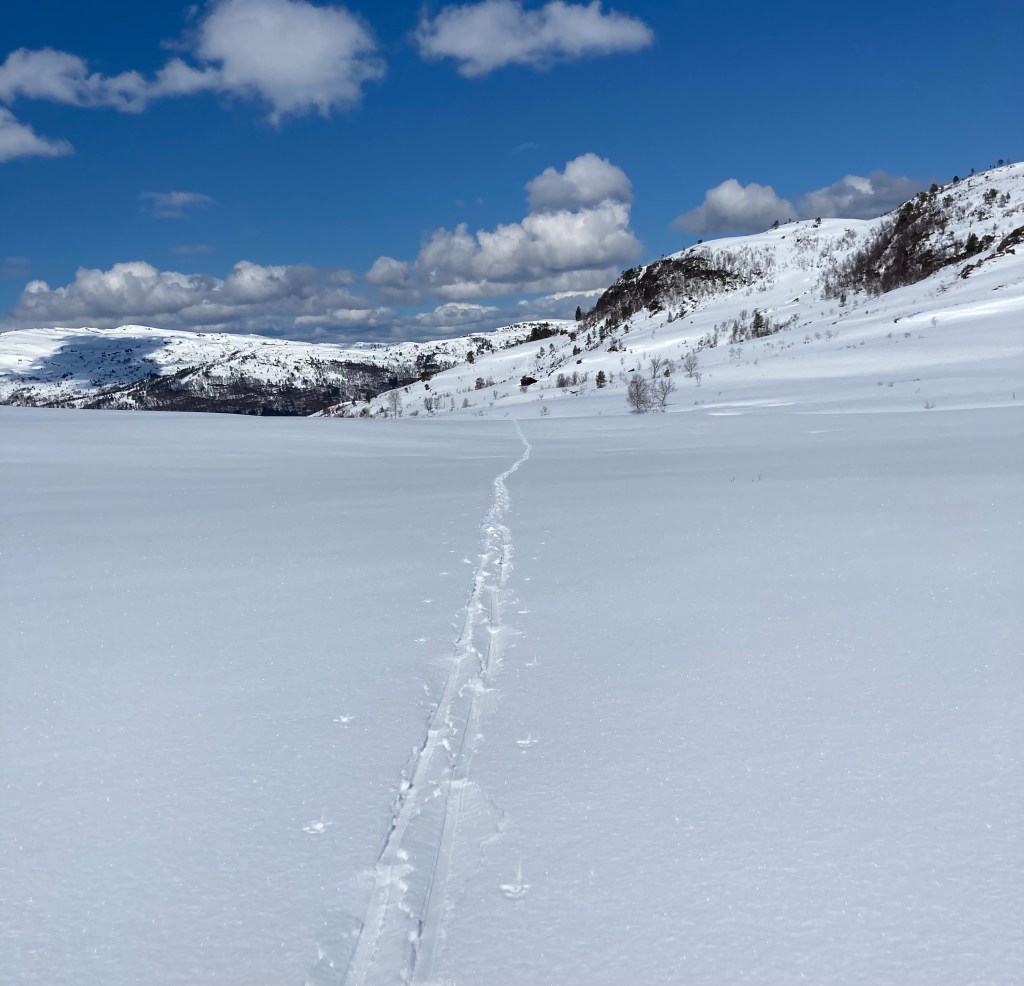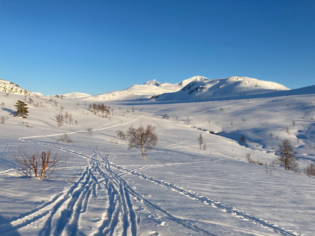 Da eg ut på formiddagen tok skiene fatt, kunne eg gli innover Tæla på hard skare – som til overmål var pynta med to millimeter puddersnø på toppen. Lykke. Livskvalitet. Naturoppleving. Skiglede.