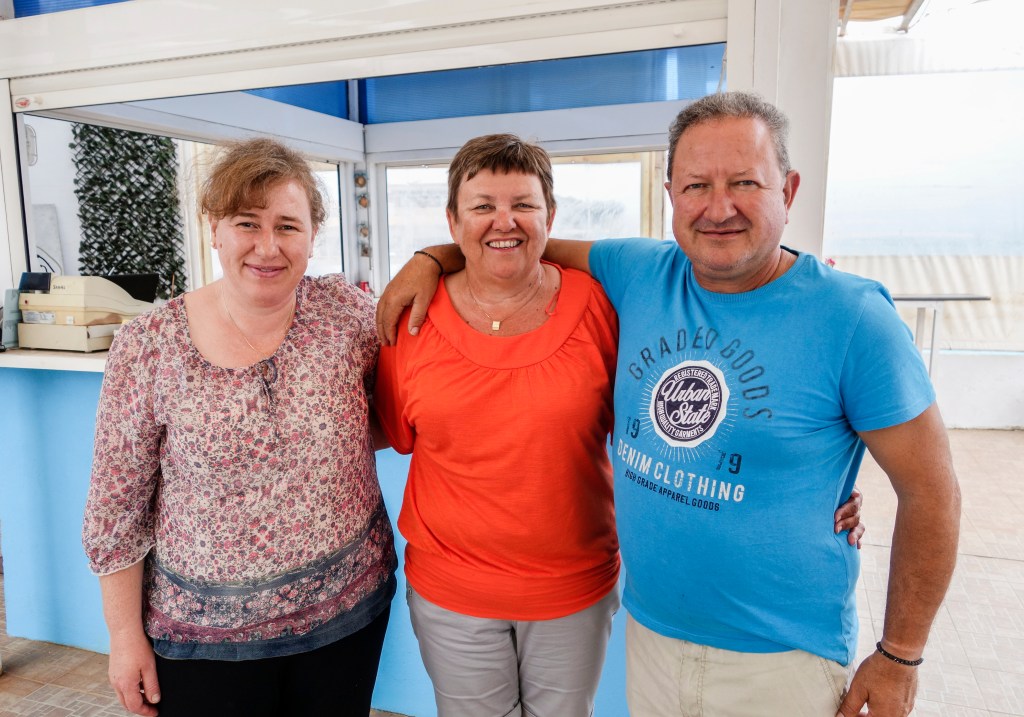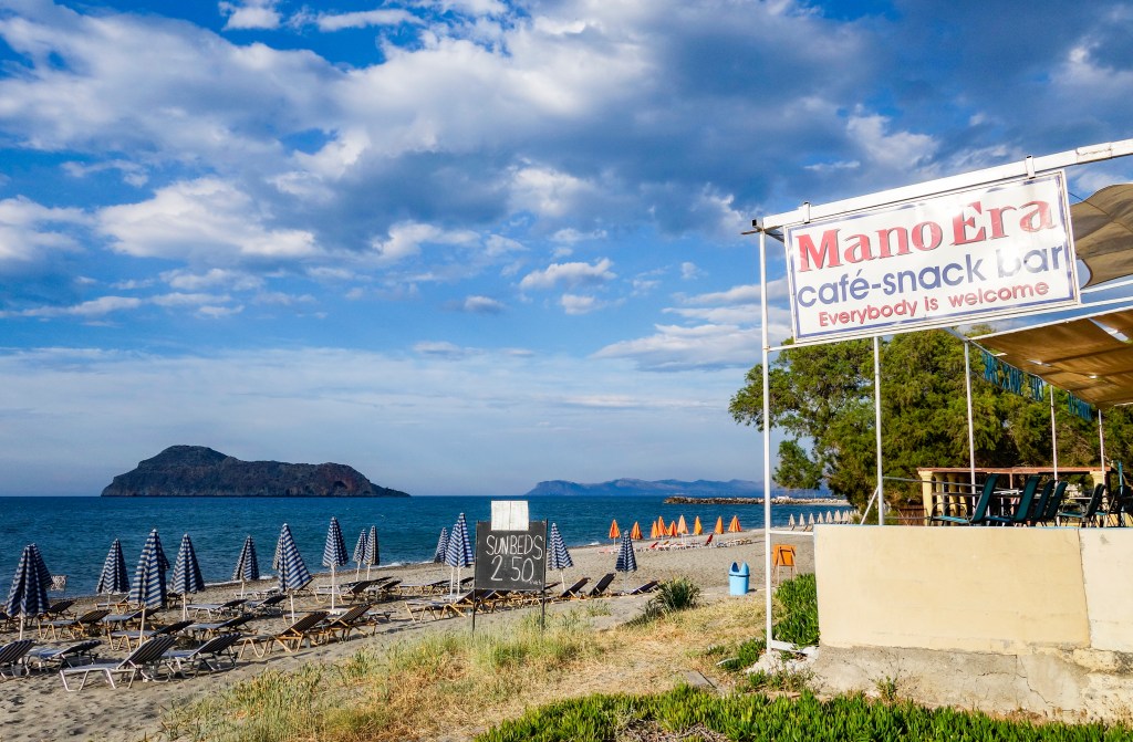 I 2017 budde vi på Costas & Christina. Ein triveleg plass, nær sjøen og kort veg opp til det yrande folkelivet.Kreta er ei frodig øy med rundt 35 millionar oliventre. Det eldste oliventreet på Kreta ligg i landsbyen Ano Vouves. Oliventreet er rekna å vere 3000-5000 år og kan derfor også vere det eldste oliventreet i verda. Våre gode vener på ManoEra, Joanna og Manolis, med Mette i midta. ManoEra er vårt faste haldepunkt når vi oppheld oss i Platanias. Ein tur eller to til Chania høyrer alltid med til Kreta-turen. Mykje vakkert å sjå i Chania. Ut på biltur for å oppleve landsbygda. Utanfor turiststadene ligg ei mengd med idylliske landsbyar. Her lever folk livet sakte. Mythos er vår favorittrestuarant i Platanias. På bildet er Mette flankert av kelneren over alle kelnerar, Aleks (t.v.), og Antonis, som er sjef for restauranten. Strikking kan ein drive med overalt. Det gode liv på ManoEra.
