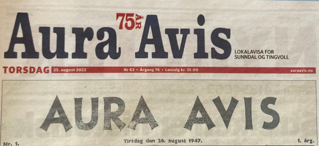 Til jubileumsavisa laget jeg et omfattende tilbakeblikk på mine år i media, med hovedvekt på tiden i Aura Avis. Redaktør Ingrid Ellevset har gitt meg tillatelse til å legge ut artikkelen her på Fintenkjarplassen. Er du interessert i avishistorie og de enorme endringene som bransjen har vært igjennom, og i tillegg kanskje litt nysgjerrig på hva jeg brukte alle disse arbeidsdagene til, kan dette være lesestoff for deg.