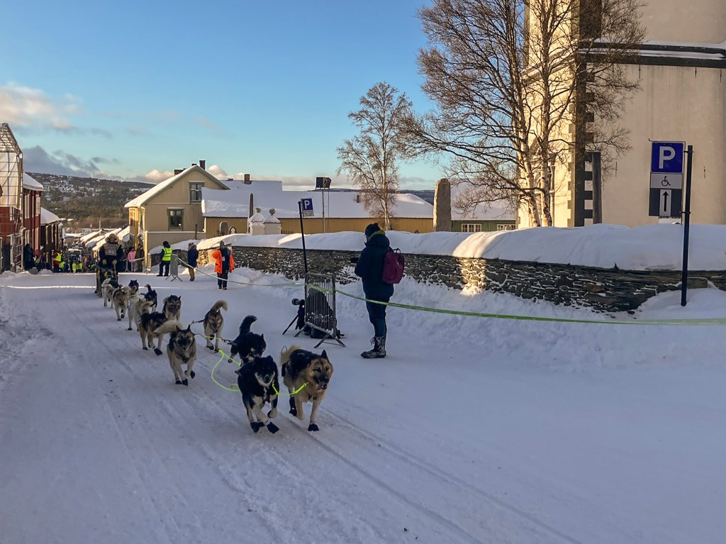 Før sjølve gåøkta, fekk vi med oss eit museumsbesøk og starten på Femundløpet. Femundløpet er ei storhending på Røros. Starten skjer midt i sentrum, og det er stint med folk på begge sider av Kjerkgata når hundane tek laus.