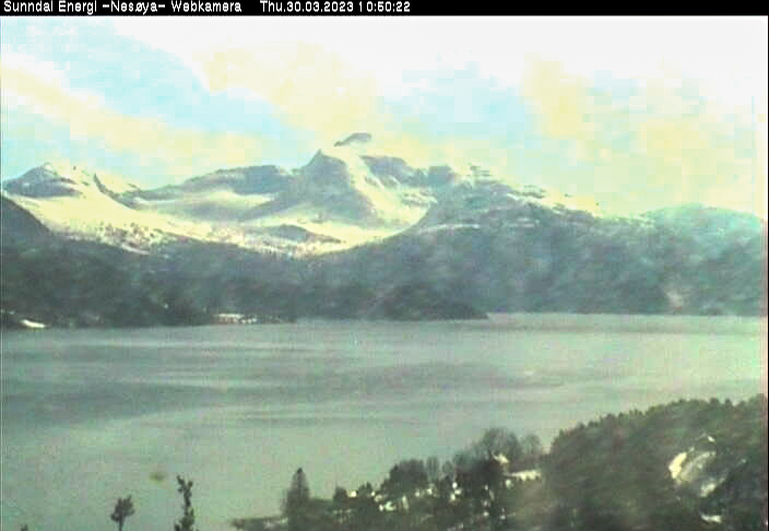 Eg går inn på webkameraet til Sunndal Energi, og ser at Sula, Gråfjellet og Bollknubben badar i sol under ein knallblå himmel. Med palmehelga like om hjørnet, er det eit syn eg kan like.