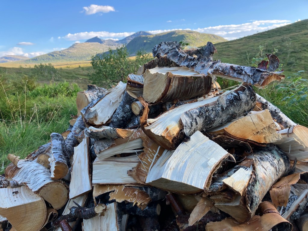 I går hadde vi ei økt med vedkapping. No har eg kløyvd opp alt saman. Det ser lovande ut. Haugen med nykløyvd ved ruver godt. Kanskje må vi dra fram nokre ekstra strangar. Det går fint. Kalenderen viser enno august. Vi har full kontroll. Dette med den aukande trongen til å ha kontroll når det gjeld ved, har med alder å gjere. Trur eg. No har vi nok til å fyre i tre hyttesesongar. Det gir ro i sjela.