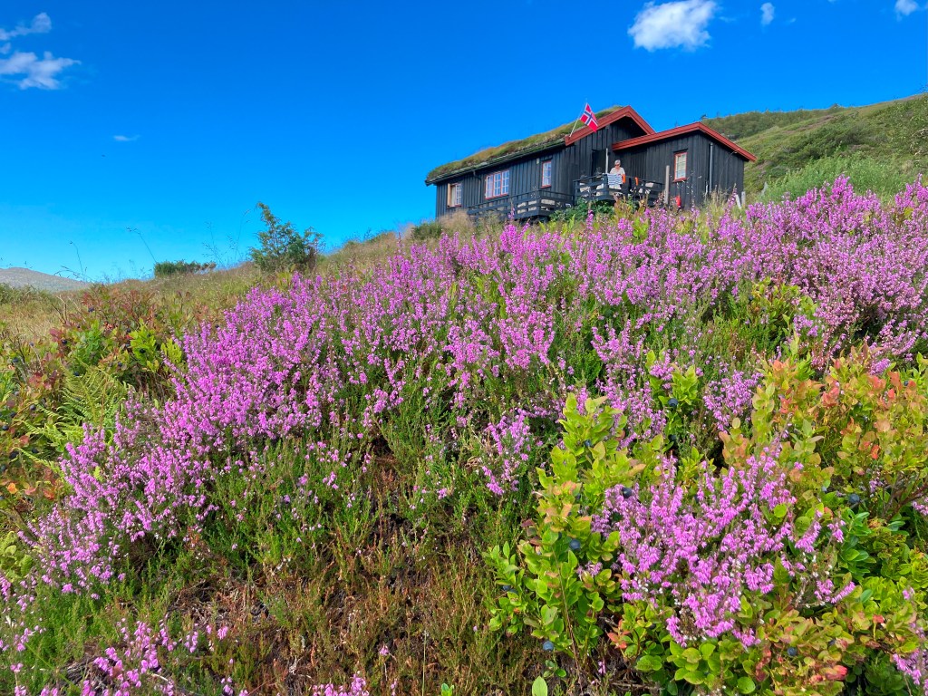 18. august kl. 14.08. Meir røsslyng, her rett nedanfor hytta. Røsslyngen vart kåra til Norges nasjonalblomst av radioprogrammet Nitimen i 1976.