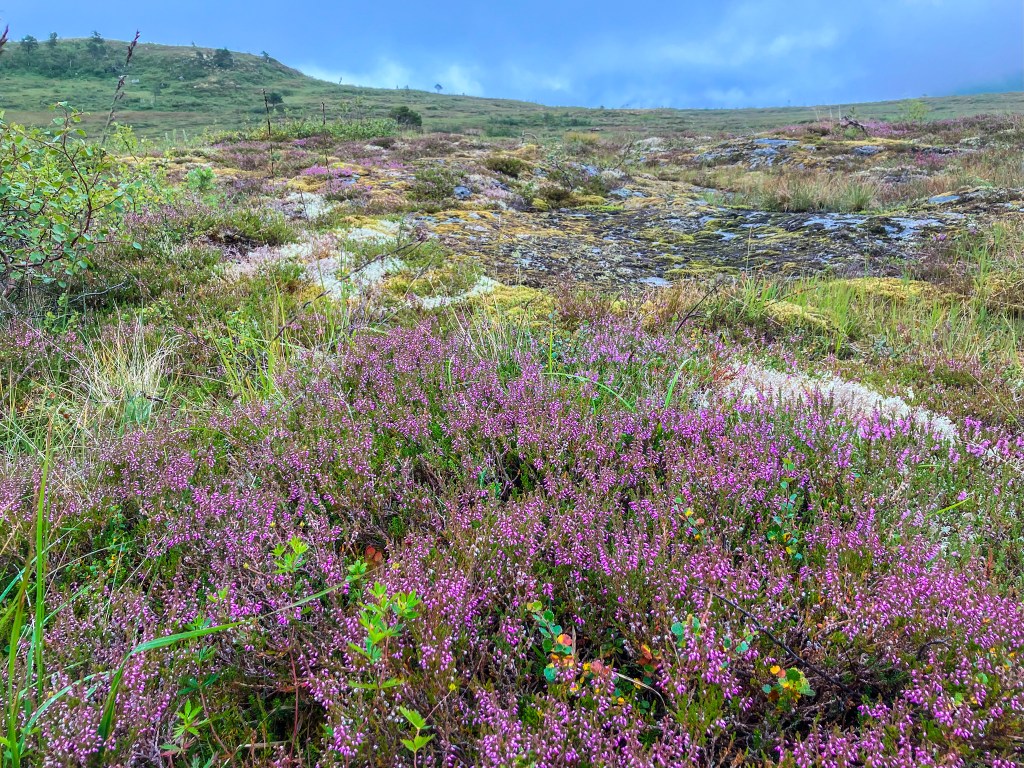 6. august kl. 15.08. Her var det ikkje molte, men derimot mykje frodig røsslyng. Når det er langt mellom bæra, må ein finne glede i alle dei andre synsinntrykka som fjellet har å by på.