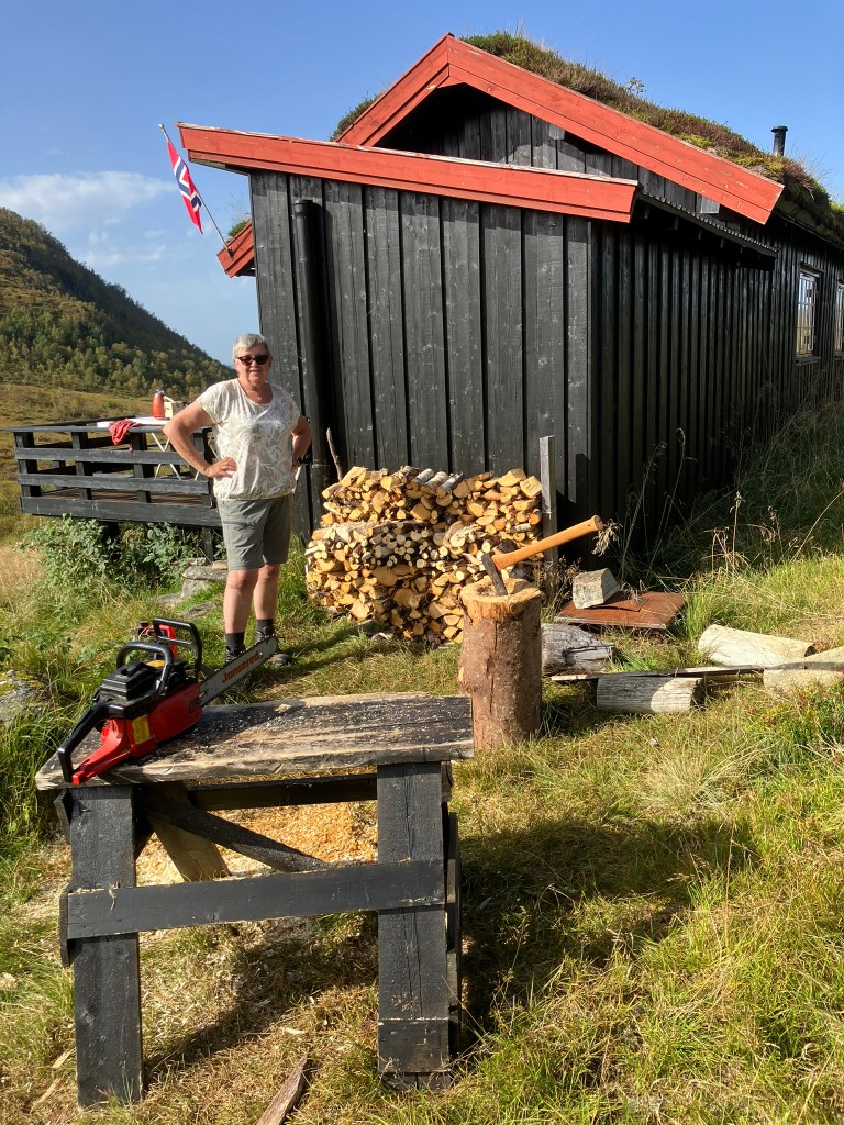 Vedarbeid høyrer hausten til. Laurdag 9. september var ein dag da vi verkeleg kunne kose oss med veden. Når eg før i tida høyrde at otten for ikkje å ha nok ved aukar proporsjonalt med alderen, meinte eg at det var berre tull. Som godt vaksen mann, må eg innsjå at eg tok feil. Vi stressar ikkje med veden på Tæla. Men vi held på såpass at vi til ei kvar tid har nok brensel til tre sesongar.