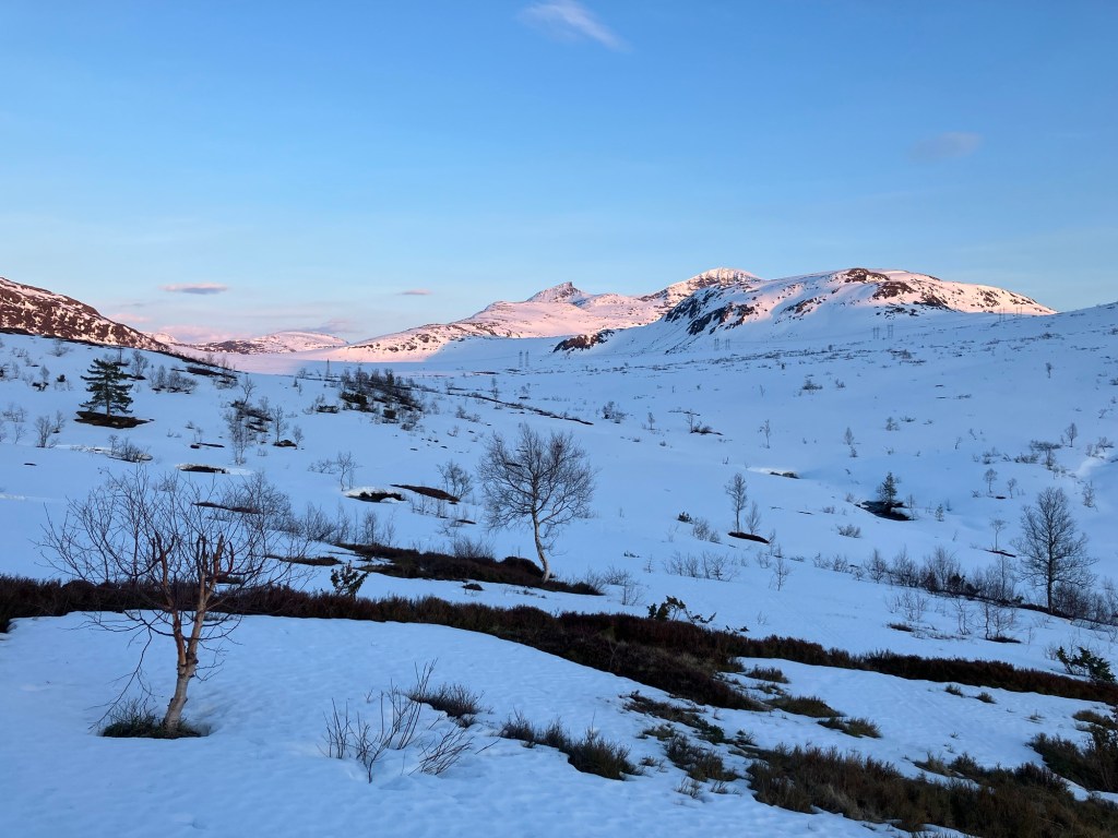 Eg gjekk på beina opp liene, der snøen no er på vikande front. I morgon blir det skitur. Forholda er perfekte. Ein kald april har ført til at skisesongen på Tæla også i år vil strekke seg eit godt stykke ut i mai. Slik såg det ikkje ut for nokre veker sidan.