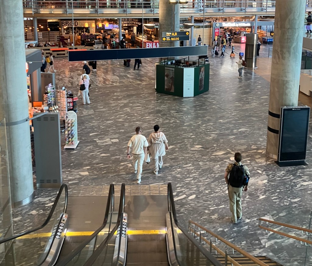 Der tok vi feil. Eit par tverre flyplasstilsette forklarte at innsjekkinga stengte automatisk når tida var inne. Sjølv om det altså på det tidspunkt var 35 minutt til flyet skulle gå, kunne dei ikkje gjere nok som helst. Lat meg legge til: Eg mistenker at det meir handla om mangel på vilje.