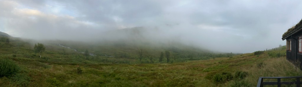 Ja, bortsett frå å sjå på skodda, da. Ho har vore her i heile dag, kvilande over eremittlivet i Tælastuå som eit fredfullt slør.